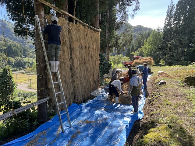 10月10日(金)稲上げをしました。。ボランティアを含む10人で2時間ほどの作業でした。
